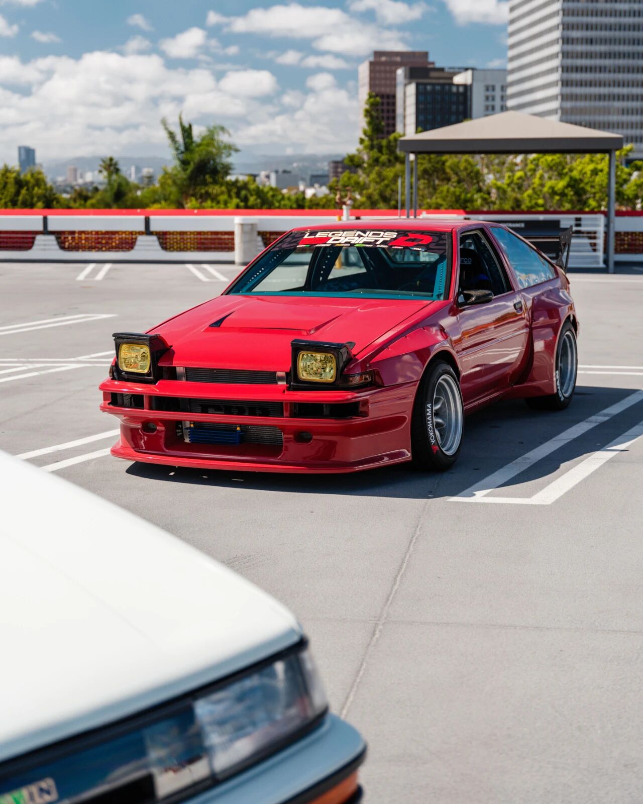 第一台是经过彻底竞技化改装的V8猛兽,搭载雪佛兰LS3发动机,能爆发出430匹的惊人马力。这台车保留了AE86经典的轻量化车身,却注入了美式V8的狂野灵魂,前悬与后桥的全面强化让其成为真正的赛道利器。