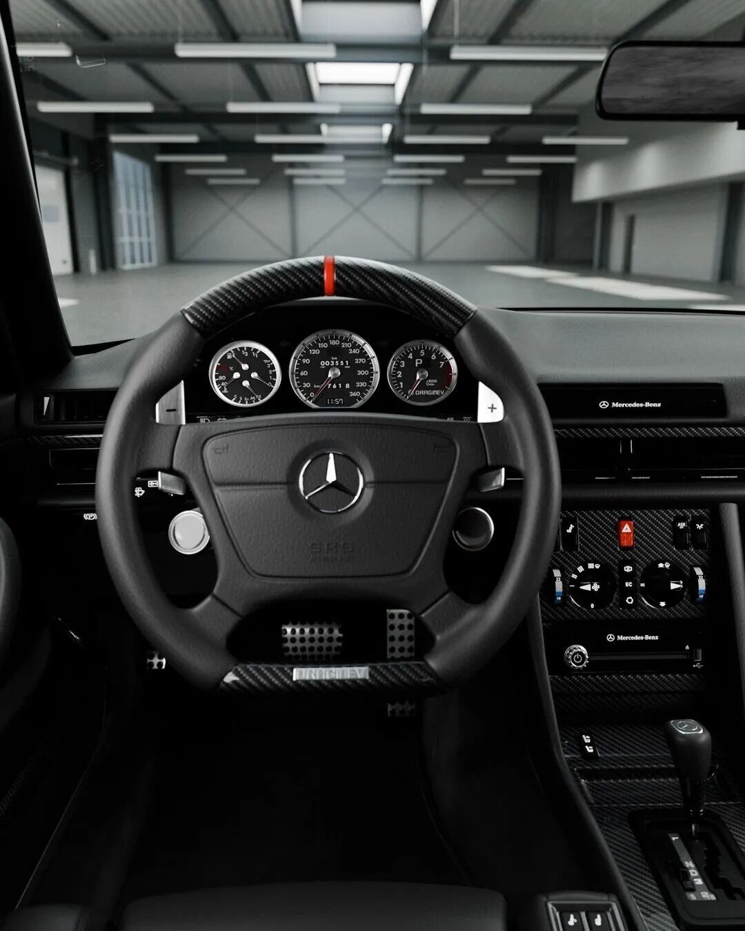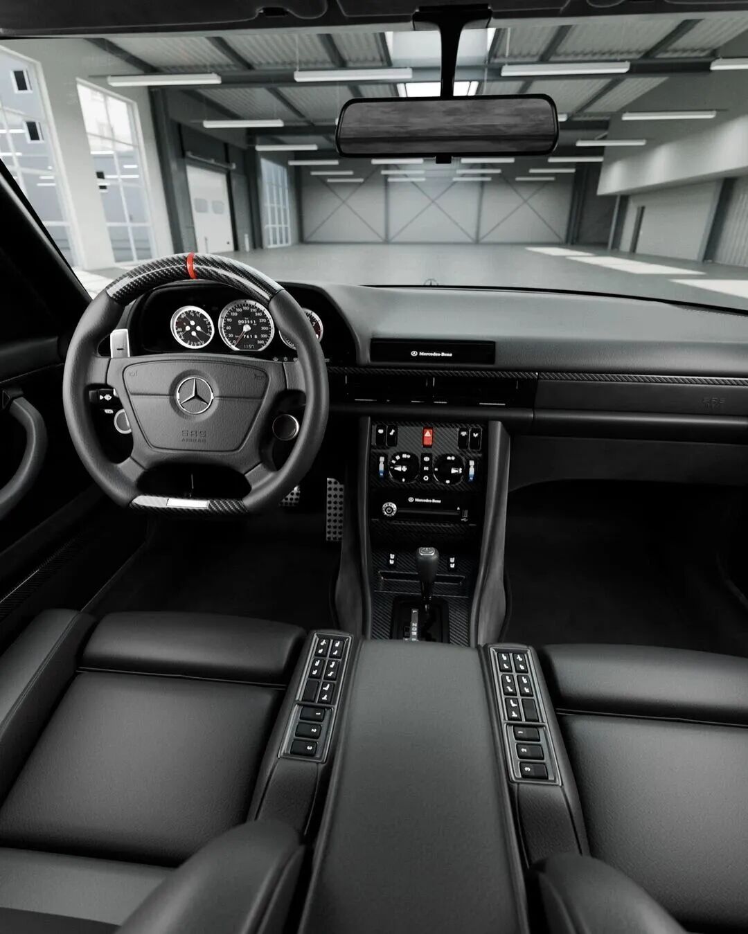 它完美保留了W126经典的镀铬中网与整体轮廓,仿佛一位身着定制西装的绅士。但当你走近,碳纤维的前唇、侧裙,以及车尾那杀气腾腾的扩散器和四出排气,又在无声地宣告:这身西装之下,是经过千锤百炼的格斗家躯体。这种古典优雅与现代性能的强烈对冲,正是其令人着迷的视觉密码。