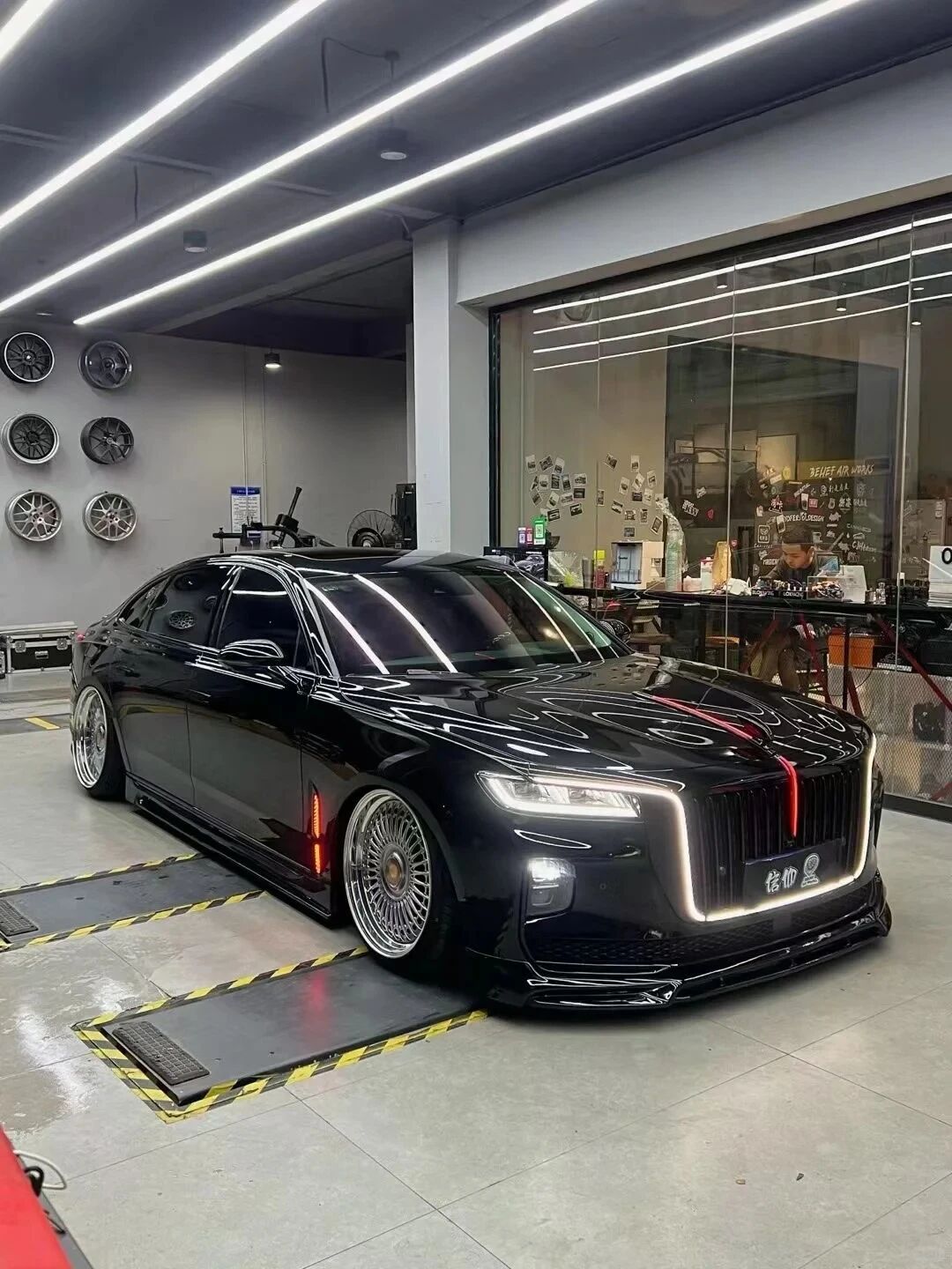 为打造红旗L5的低趴姿态,全面采用国产品牌定制解决方案。底盘搭载了Feelair空气避震与MagicAir控制系统,精准实现了车身高度可调。轮毂则选用VSP 22寸三片锻造定制款,装车后不仅视觉效果更为饱满,更彰显了国产改装部件的高标准与独特魅力。