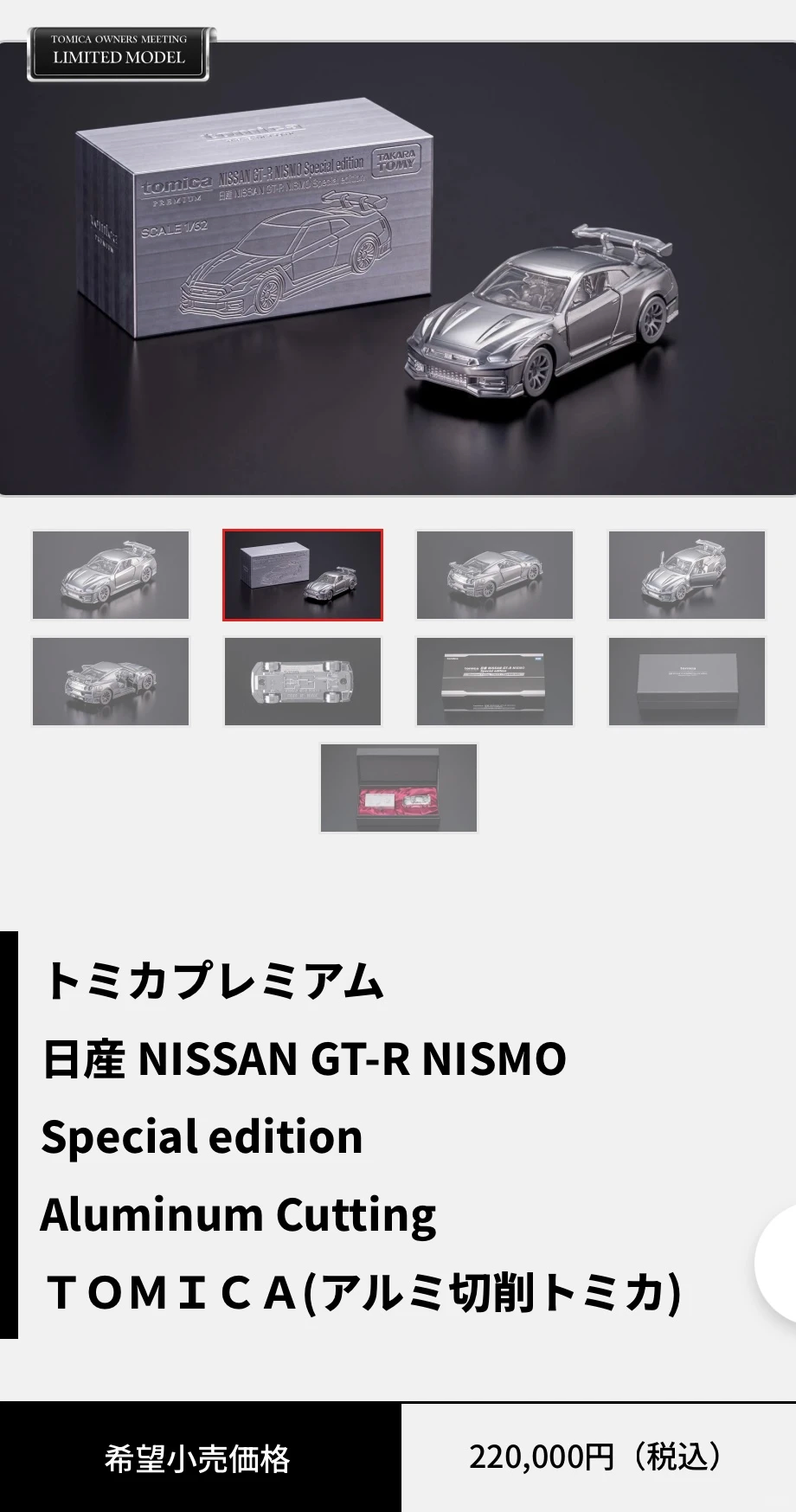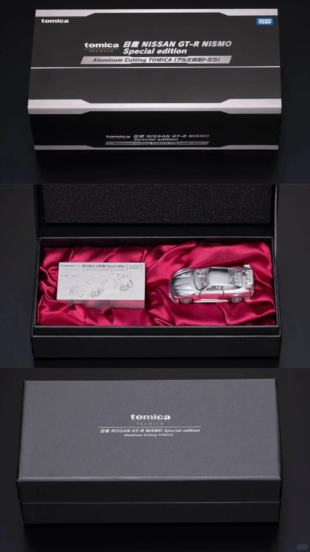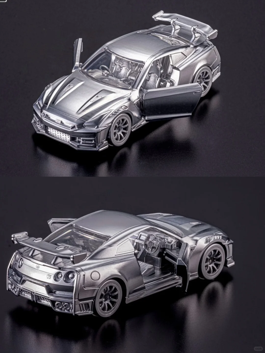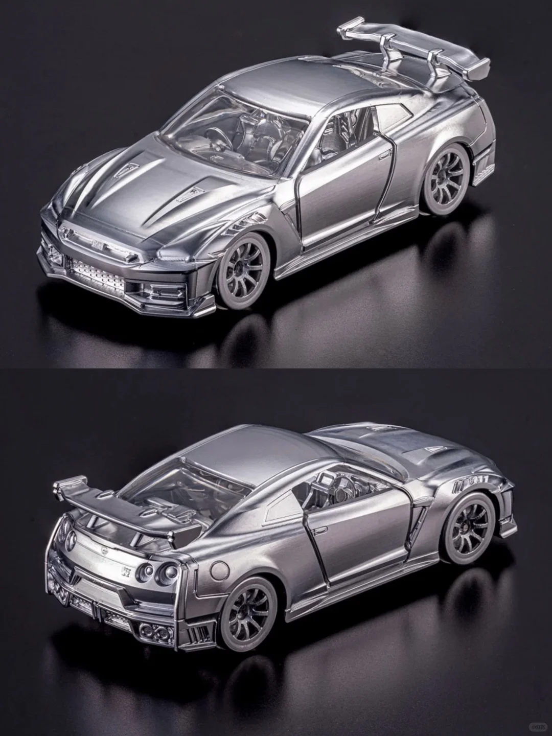 2010年,TOMICA为了庆祝40周年,搞了个超硬核操作:不用常规的压铸方法,而是拿实心铝合金一块块精密加工、组装,做出了这款细节逆天的GT-R R35模型。车门能开、轮胎能转、悬挂能动,连车身棱角都还原得一丝不苟,阳光下闪闪发亮,堪称"迷你版战神"。